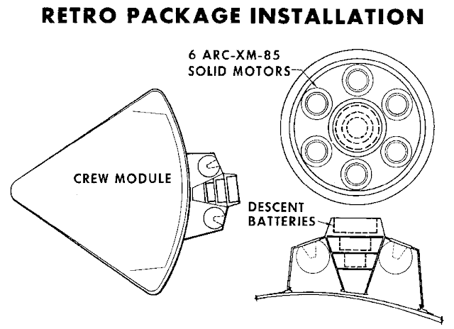 NAA предложила решить проблему аварийной приземления, фактически переместив амортизаторы со стоек сиденья на теплозащитный экран MODAP CM и добавив четыре твердотопливные посадочные ракеты. В случае приземления на землю чашеобразный тепловой экран развернется вниз на амортизирующих стойках, а ракеты воспламенятся и вылетят из-за защиты вперед.